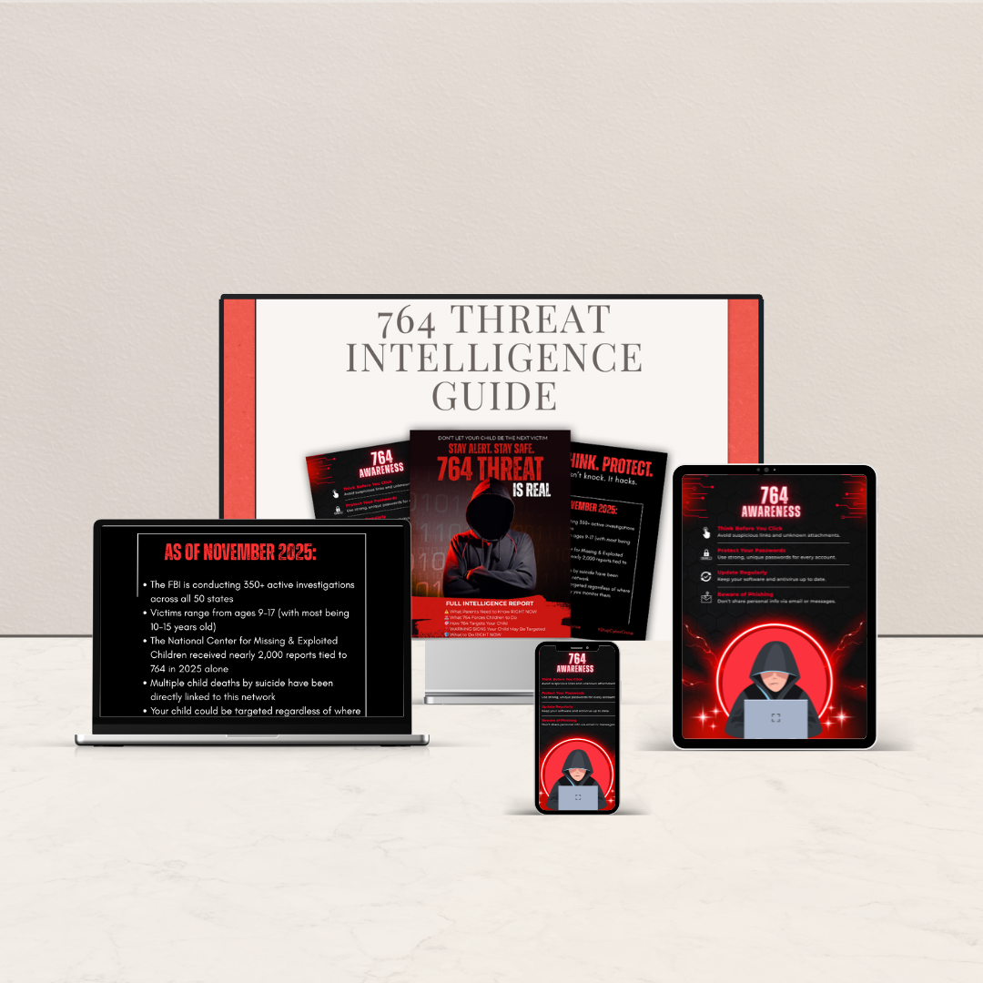 Sextortion. Cyberbullying. Online predators. AI-generated deepfakes (this is brand-new and terrifying). Self-harm communities. This 2025 intelligence briefing covers every major threat your child faces online—not just 764. Each threat includes how it works, where it happens, and how to protect your kid.