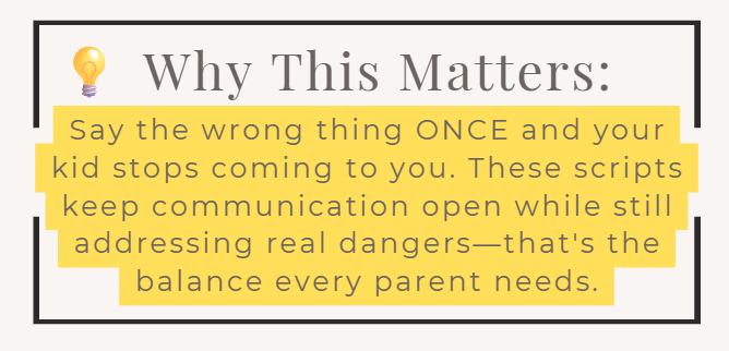None of us want to have these conversations. And most of us have no clue what to say without either terrifying our kids or making things worse. These scripts give you the exact words to use—literally read them out loud if you need to.