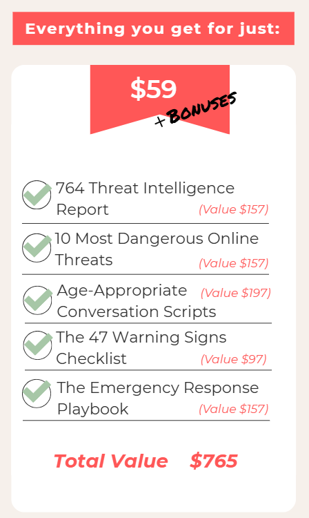 Here's the thing: you're protected by our 30-Day Money-Back Guarantee. That means you can download everything, use the conversation scripts with your child, implement the platform security guides, reference the warning signs checklist—and if you don't feel significantly more confident about protecting your kids online, just email us within 30 days.